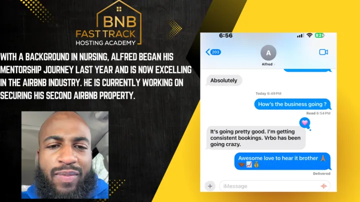"From Nerve-Racking to Finish Line , I never thought this was possible. Me and Mike always wanted to start a business together and since we listed our Airbnb we have been cash flowing crazy thanks to BNB Fast Track Academy for making it possible…"